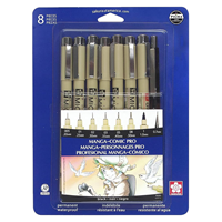 | Sakura Pigma Micron Set of 8 Manga-Comic Pro Price: $30.99When accuracy, minute details, and preservation count, the unparalleled archival quality of Pigma Micron pens makes them everyone's first choice. Artist, writers, and illustrators reach for Pigma Micron to convey their personality, style, or feelings, and to safeguard their work with the lasting quality of Pigma ink. The first disposable technical pen using archival pigmented ink, Pigma Micron ink pen is selected for fine-point technical and artistic applications requiring top quality capabilities. Set Contains: 6 Pigma Microns (black) 005, 01, 02, 03, 05, 08 1 Pigma Graphic (black) 1 1 0.7MM Fixed Sleeve Mechanical PencilDrawing & Illustration: See more » |