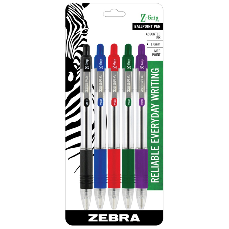 Zebra Z-Grip Retractable Assorted Ballpoint Pens 5Pk